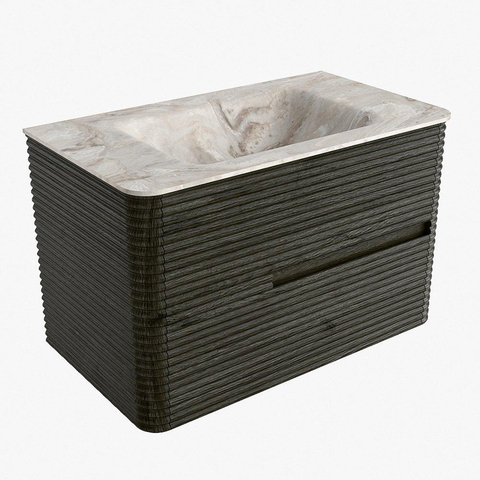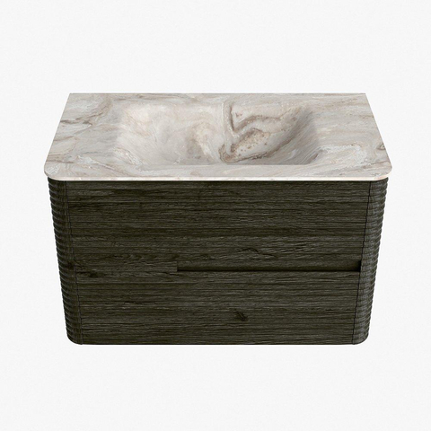 Mondiaz CIRO-DLUX Meuble de salle de bains - 80x45x50cm - Plan vasque solid surface Frappe - 1 vasque au milieu - sans trous de robinetterie - 2 tiroirs - Shadow