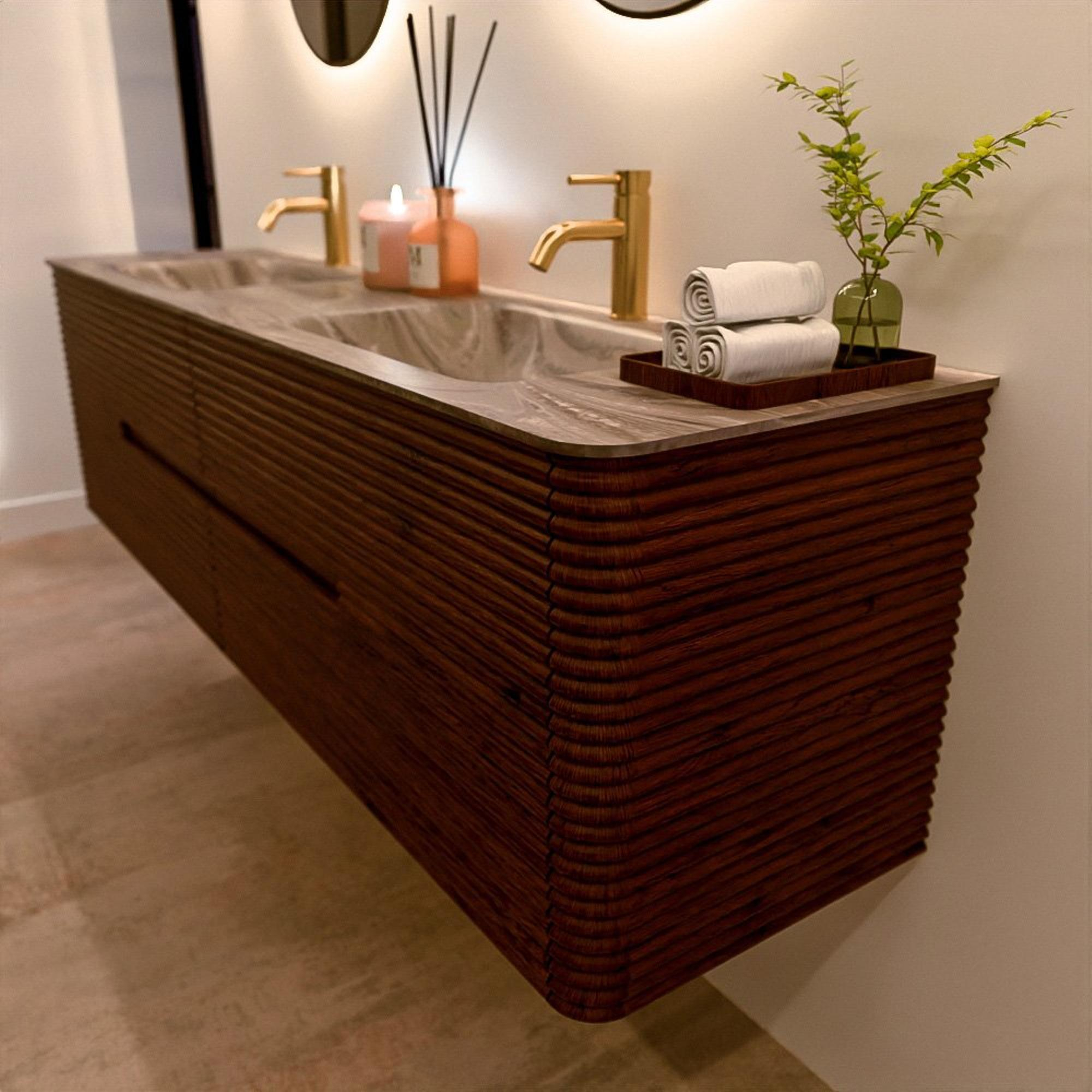 Le meuble de salle de bain CIRO-DLUX a été développé pour ceux qui choisissent un design moderne, des matériaux naturels et une fonctionnalité de haute qualité. Avec des dimensions allant de 70 cm à 190 cm, la gamme CIRO-DLUX s’intègre facilement aussi bien dans les salles de bain compactes que dans les grands espaces de design. Chaque meuble est une combinaison équilibrée d’esthétique, de savoir-faire et de qualité durable.