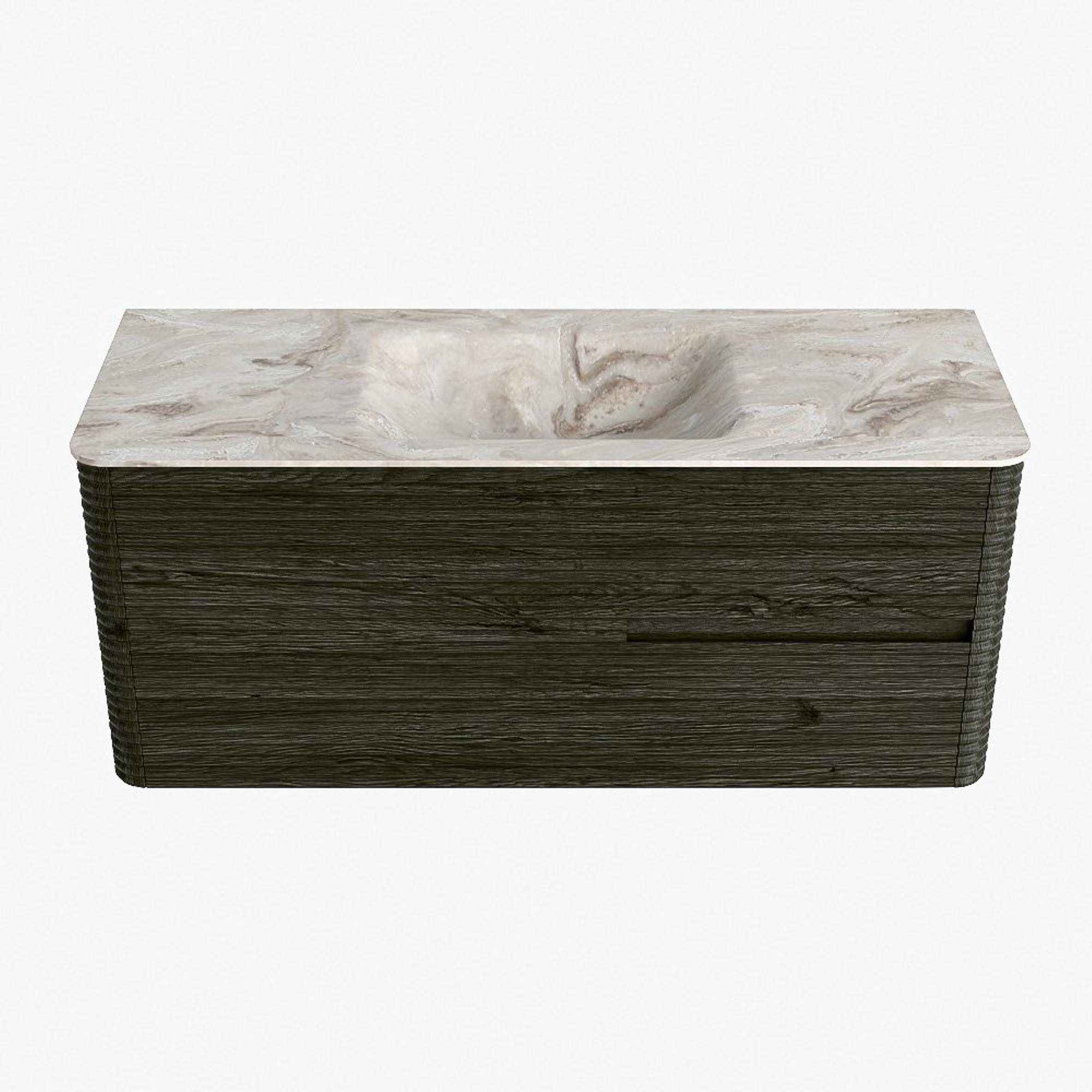 Mondiaz CIRO-DLUX Ensemble de meubles de salle de bains - 120x45x50cm - lavabo en solid surface Frappe - 1 vasque au milieu - sans trous de robinet - 2 tiroirs - Shadow