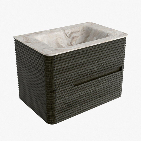 Mondiaz CIRO-DLUX Meuble de salle de bains - 70x45x50cm - lavabo solid surface Frappe - 1 vasque centrale - 1 trou de robinet - 2 tiroirs - Shadow