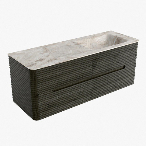 Mondiaz CIRO-DLUX Ensemble de meubles de salle de bains - 130x45x50cm - Vasque solid surface Frappe - 1 lavabo à droite - 1 trou de robinet - 4 tiroirs - Shadow
