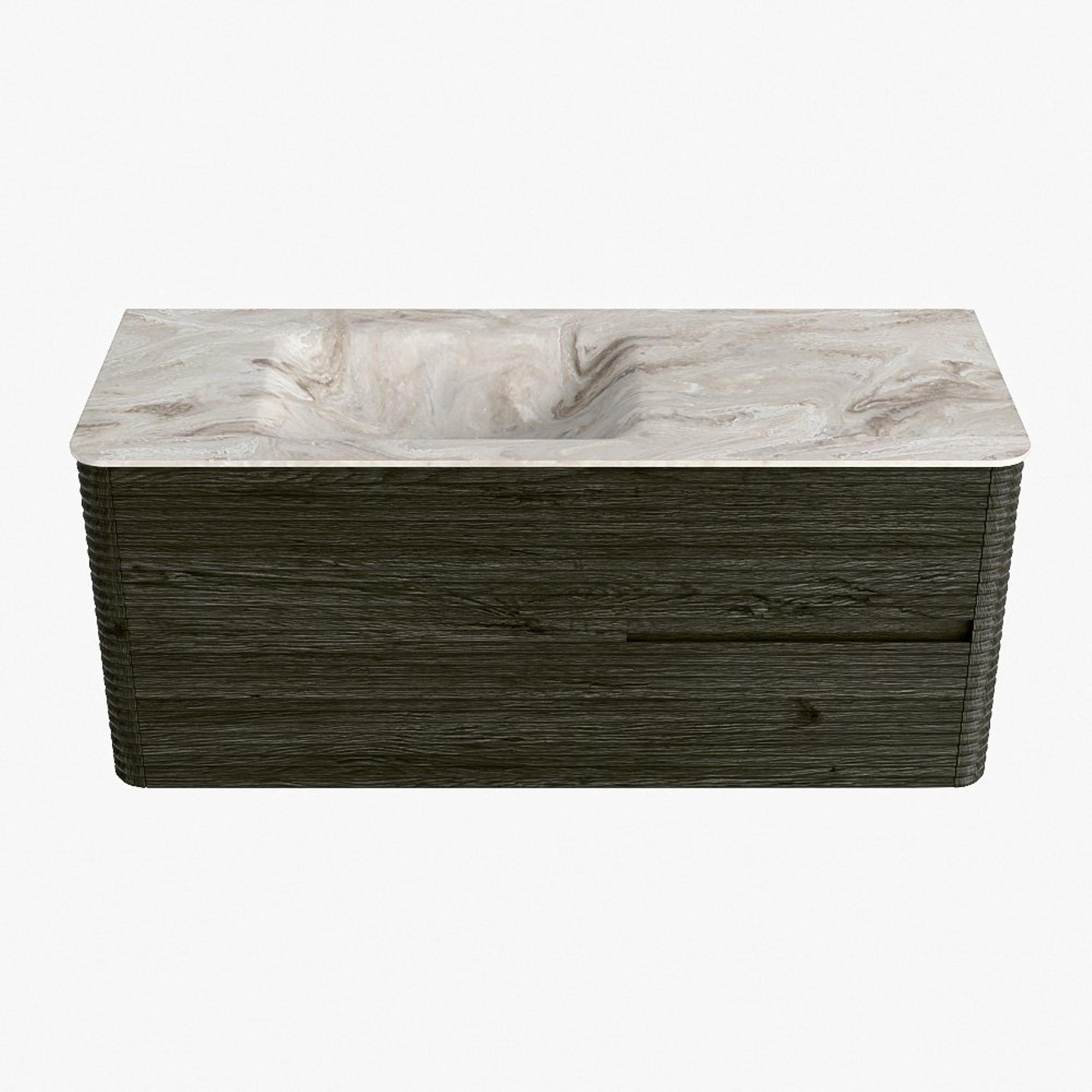Mondiaz CIRO-DLUX Ensemble de meubles de salle de bains - 120x45x50cm - Plan vasque solid surface Frappe - 1 vasque à gauche - 1 trou de robinet - 2 tiroirs - Shadow
