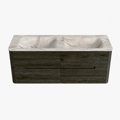Mondiaz CIRO-DLUX Meuble de salle de bains - 130x45x50cm - lavabo en solid surface Frappe - 2 vasques double - sans trous de robinetterie - 4 tiroirs - Shadow