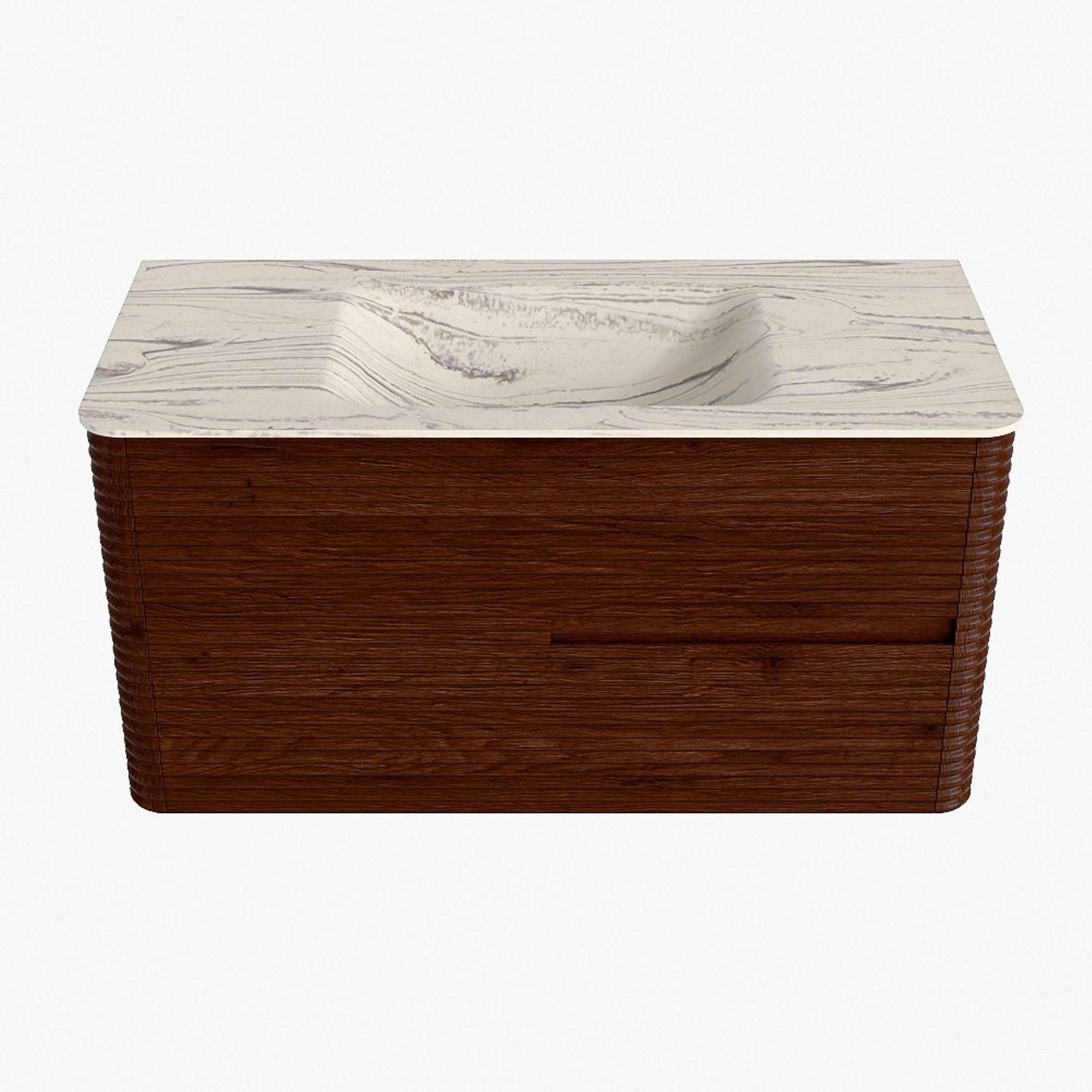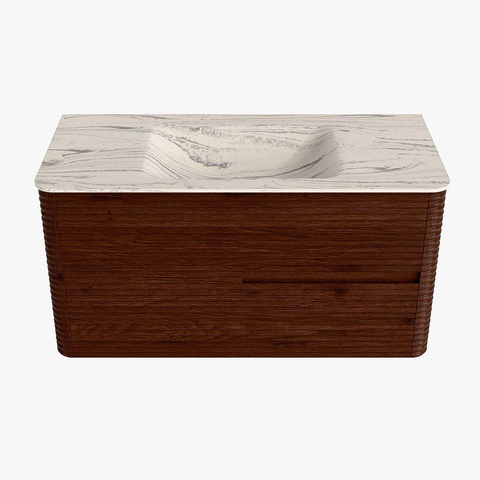 Mondiaz CIRO-DLUX Meuble de salle de bains - 100x45x50cm - plan vasque solid surface Nata - 1 vasque au centre - sans trous de robinetterie - 2 tiroirs - Ruby