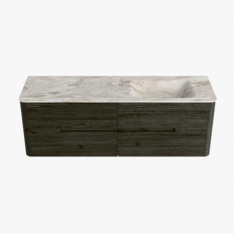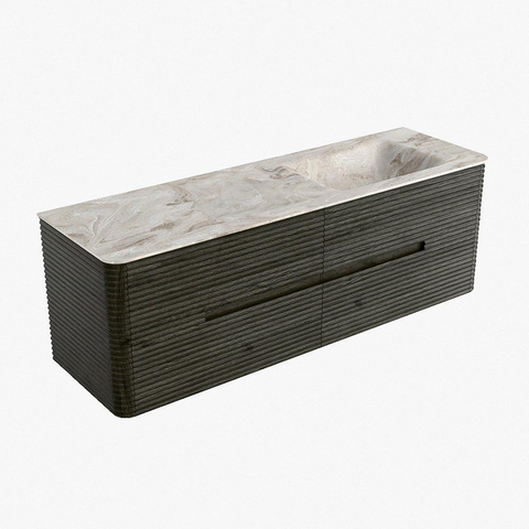 Mondiaz CIRO-DLUX Ensemble de meuble de salle de bains - 150x45x50cm - Plan vasque solid surface Frappe - 1 vasque à droite - 1 trou de robinet - 4 tiroirs - Shadow