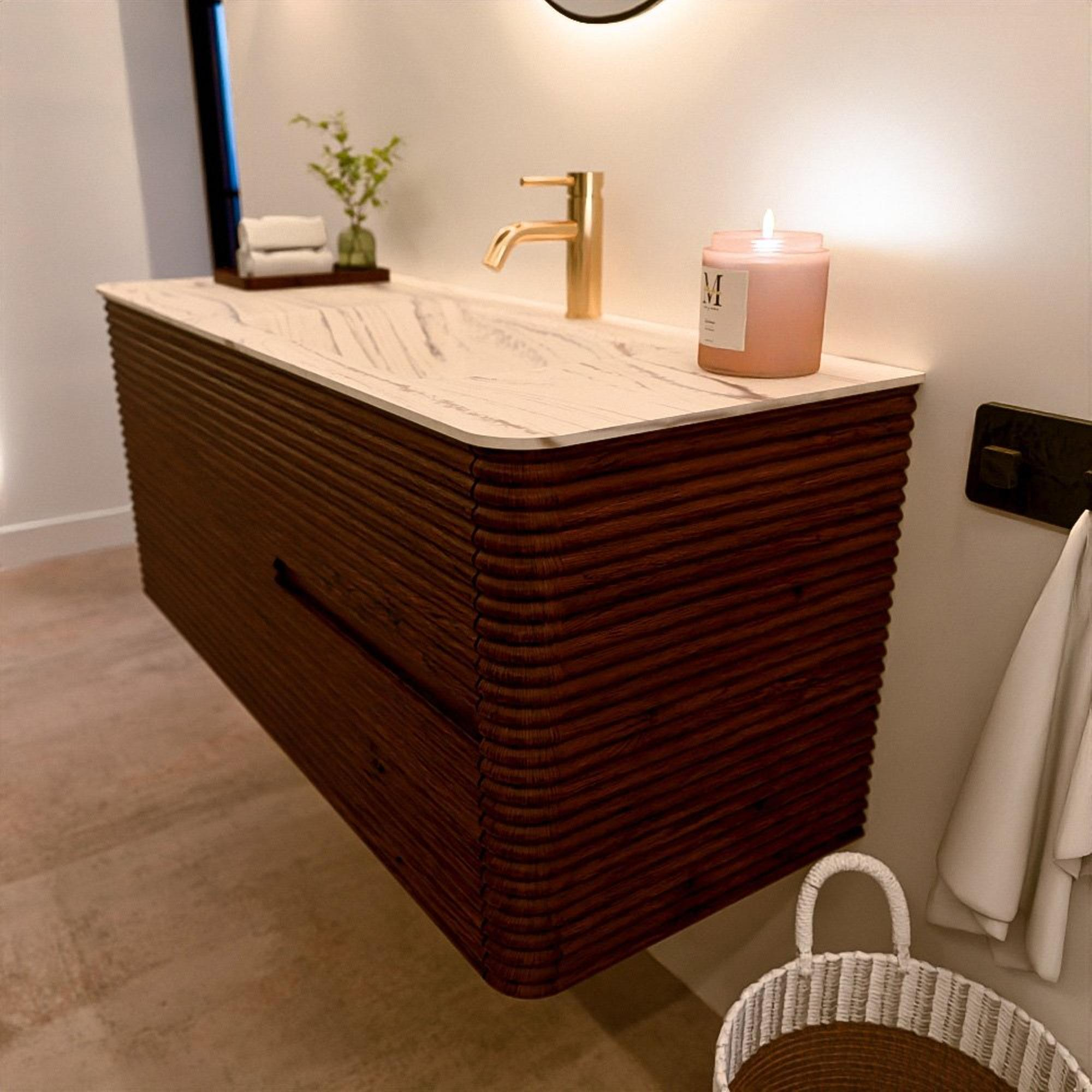 Le meuble de salle de bain CIRO-DLUX a été développé pour ceux qui choisissent un design moderne, des matériaux naturels et une fonctionnalité de haute qualité. Avec des dimensions allant de 70 cm à 190 cm, la gamme CIRO-DLUX s’intègre facilement aussi bien dans les salles de bain compactes que dans les grands espaces de design. Chaque meuble est une combinaison équilibrée d’esthétique, de savoir-faire et de qualité durable.