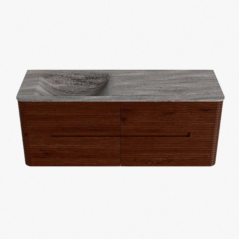 Mondiaz CIRO-DLUX Ensemble de meubles de salle de bains - 130x45x50cm - Plan-vasque solid surface Oza - 1 vasque à gauche - 1 trou de robinet - 4 tiroirs - Ruby