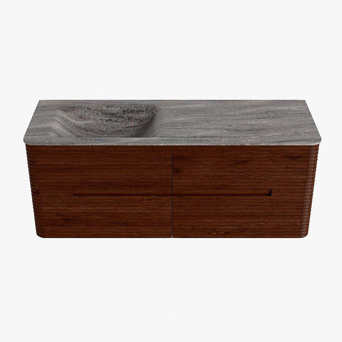 Mondiaz CIRO-DLUX Ensemble de meubles de salle de bains - 130x45x50cm - vasque en solid surface Oza - 1 vasque à gauche - sans trous de robinetterie - 4 tiroirs - Ruby