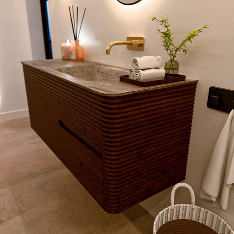 Mondiaz CIRO-DLUX Meuble de salle de bains - 120x45x50cm - Plan vasque solid surface Oza - 1 vasque à droite - sans trous de robinetterie - 2 tiroirs - Ruby