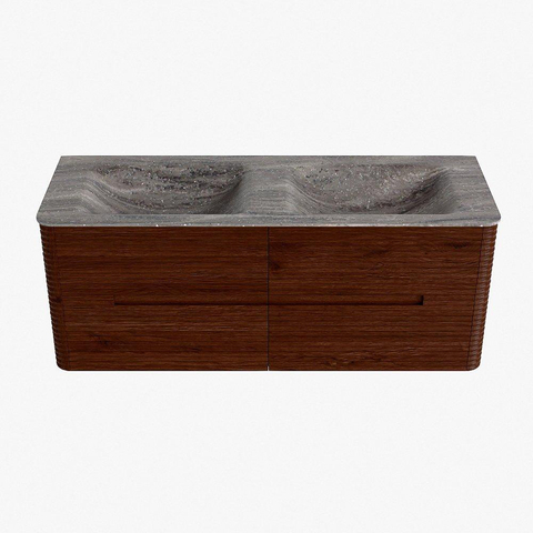 Mondiaz CIRO-DLUX Meuble de salle de bains - 130x45x50cm - Plan vasque Solid surface Oza - 2 vasques Double - 2 trous de robinetterie - 4 tiroirs - Ruby
