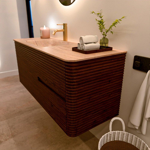 Mondiaz CIRO-DLUX Ensemble de meubles de salle de bains - 120x45x50cm - Plan-vasque solid surface Saba - 1 lavabo à gauche - 1 trou de robinet - 2 tiroirs - Ruby