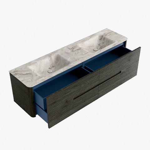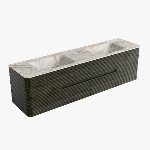 Mondiaz CIRO-DLUX Meuble de salle de bains - 180x45x50cm - lavabo solid surface Frappe - 2 vasques double - sans trous de robinetterie - 4 tiroirs - Shadow