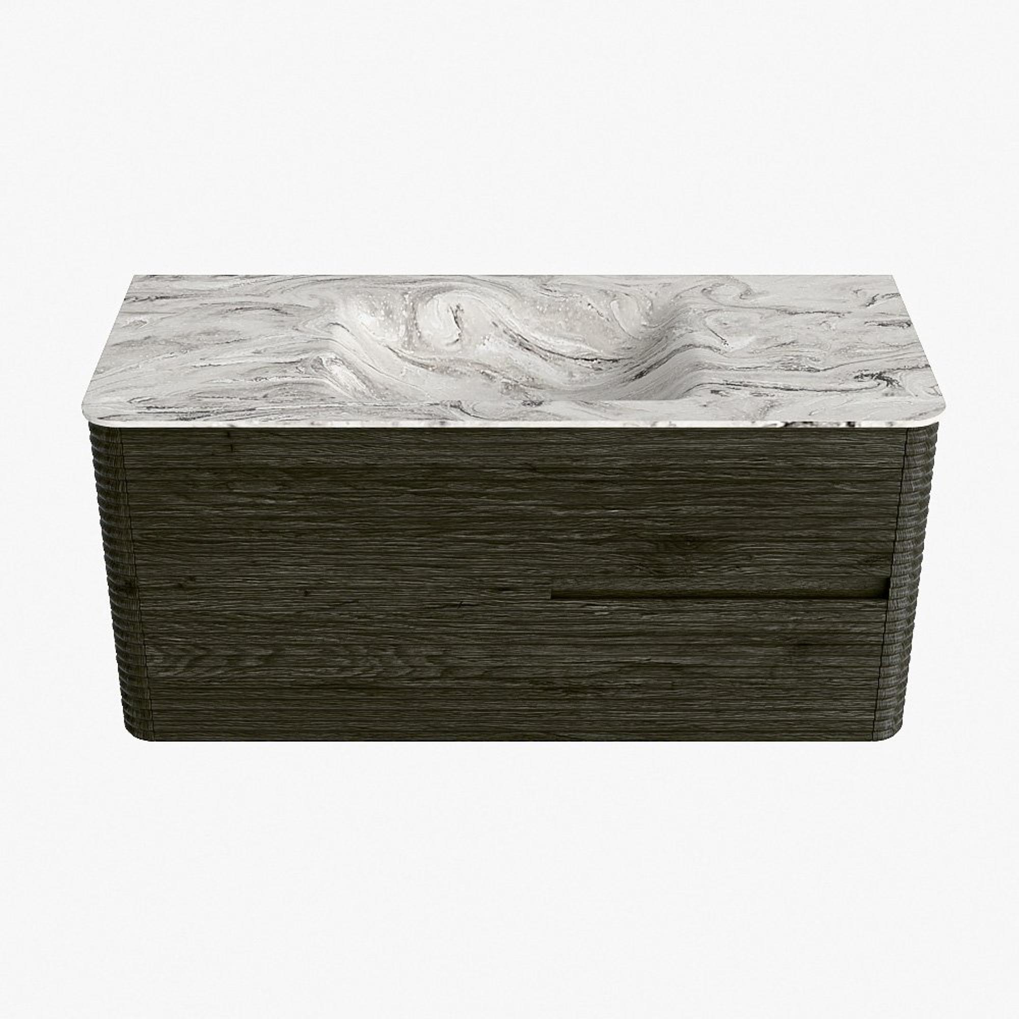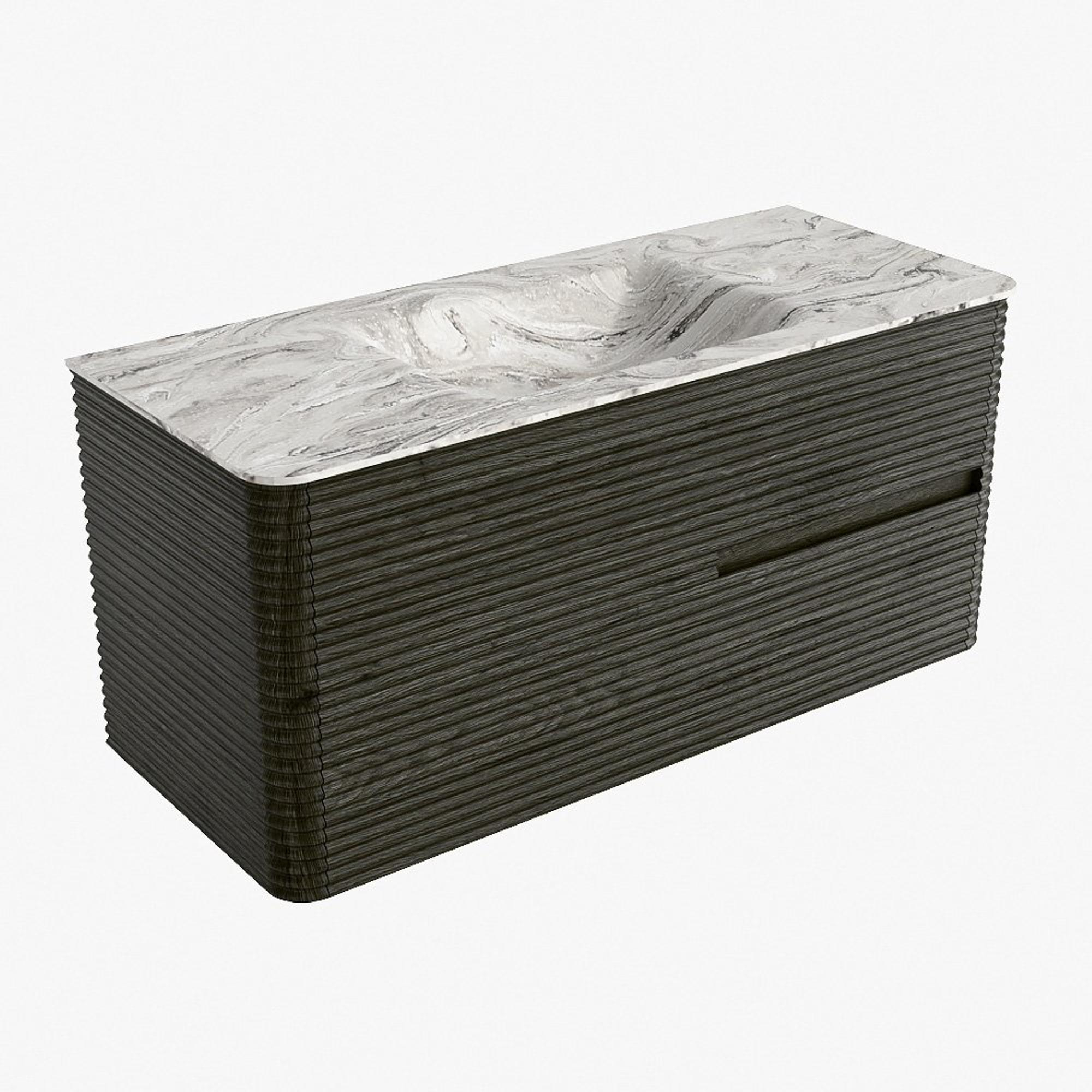 Mondiaz CIRO-DLUX Meuble de salle de bains - 110x45x50cm - Plan vasque solid surface Glace - 1 vasque centrale - 1 trou de robinetterie - 2 tiroirs - Shadow
