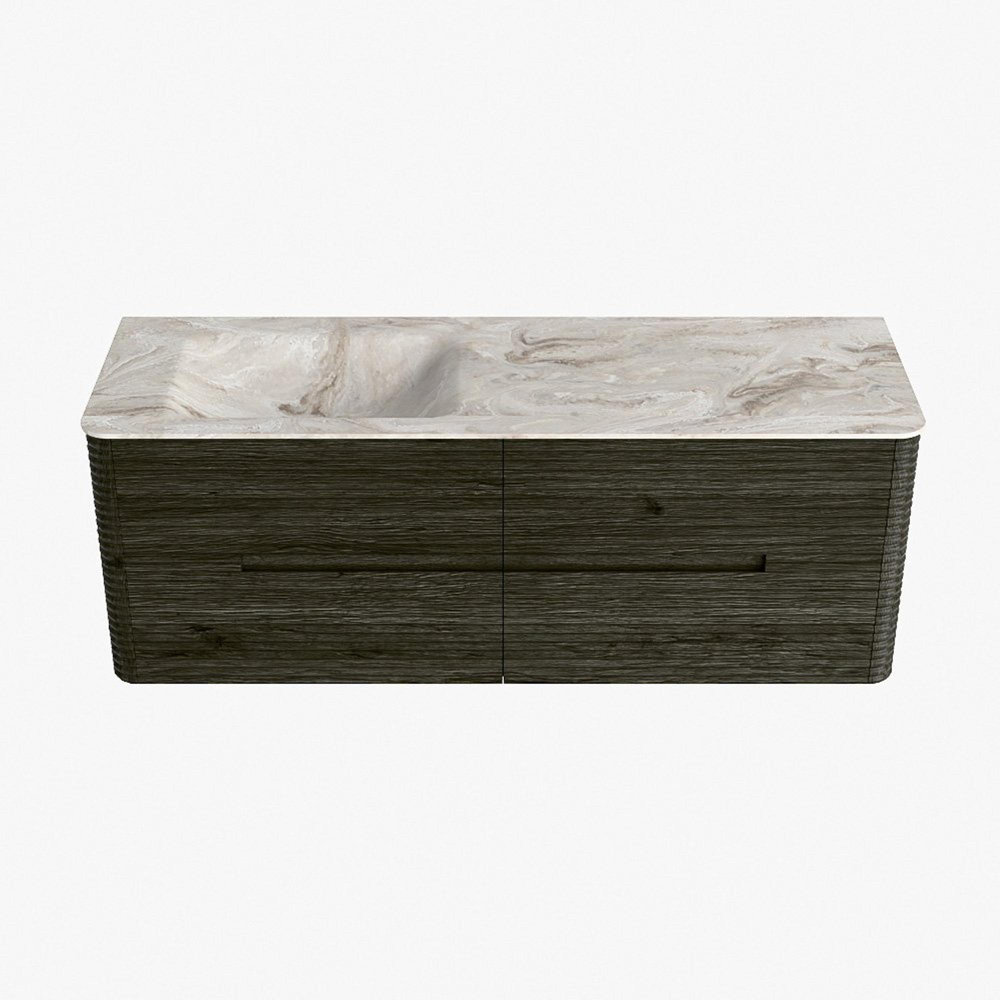 Mondiaz CIRO-DLUX Meuble de salle de bains - 140x45x50cm - Plan vasque solid surface Frappe - 1 lavabo à gauche - 1 trou de robinetterie - 4 tiroirs - Shadow