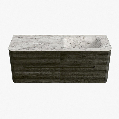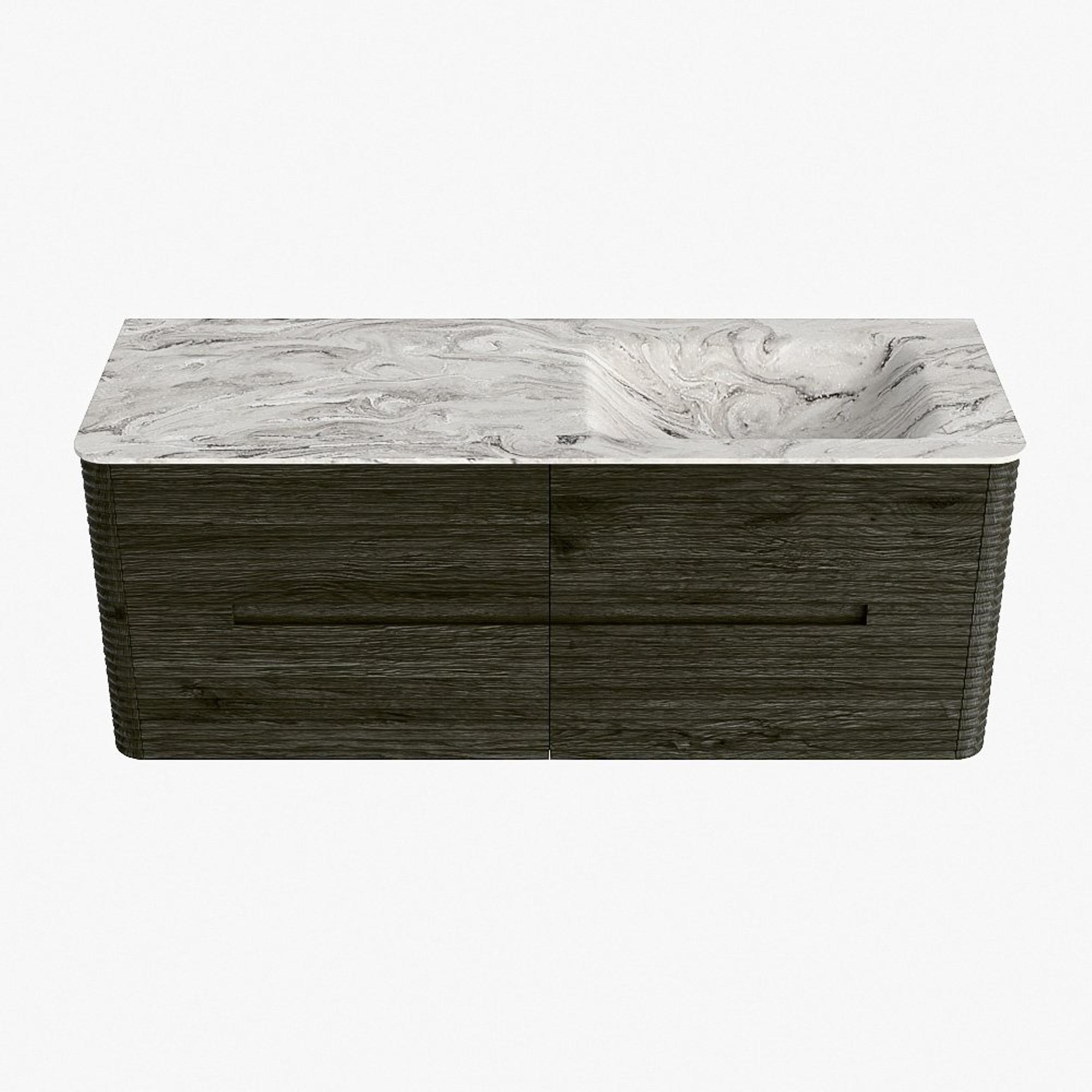 Mondiaz CIRO-DLUX Ensemble de meubles de salle de bains - 130x45x50cm - plan-vasque en solid surface Glace - 1 lavabo à droite - sans trous de robinet - 4 tiroirs - Shadow