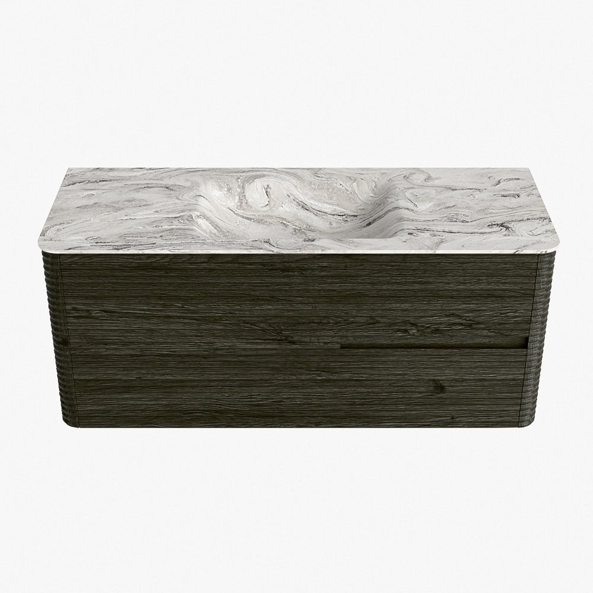 Mondiaz CIRO-DLUX Ensemble de meubles de salle de bains - 120x45x50cm - Plan-vasque en solid surface Glace - 1 vasque au milieu - 1 trou de robinet - 2 tiroirs - Shadow