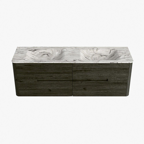 Mondiaz CIRO-DLUX Ensemble de meubles de salle de bains - 150x45x50cm - Plan-vasque solid surface Glace - 2 vasques Double - sans trous de robinet - 4 tiroirs - Shadow