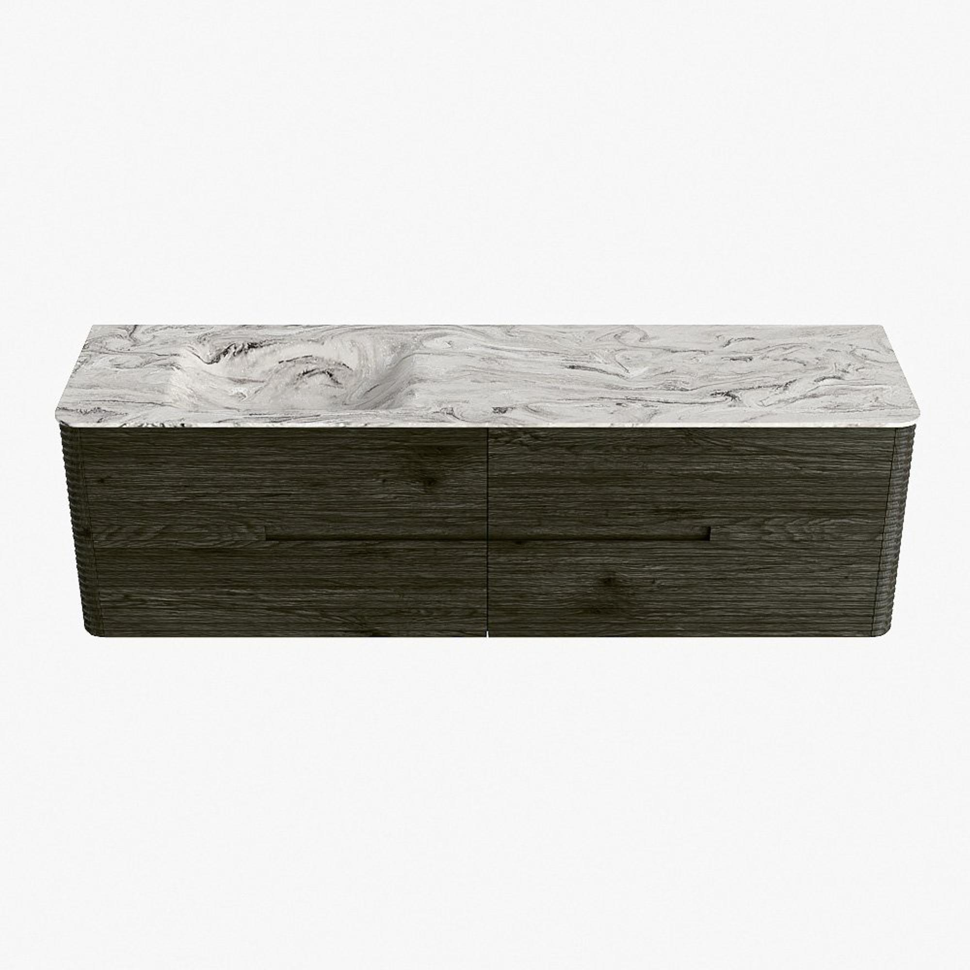 Mondiaz CIRO-DLUX Ensemble de meubles de salle de bains - 170x45x50cm - lavabo en solid surface Glace - 1 vasque à gauche - sans trous de robinetterie - 4 tiroirs - Shadow