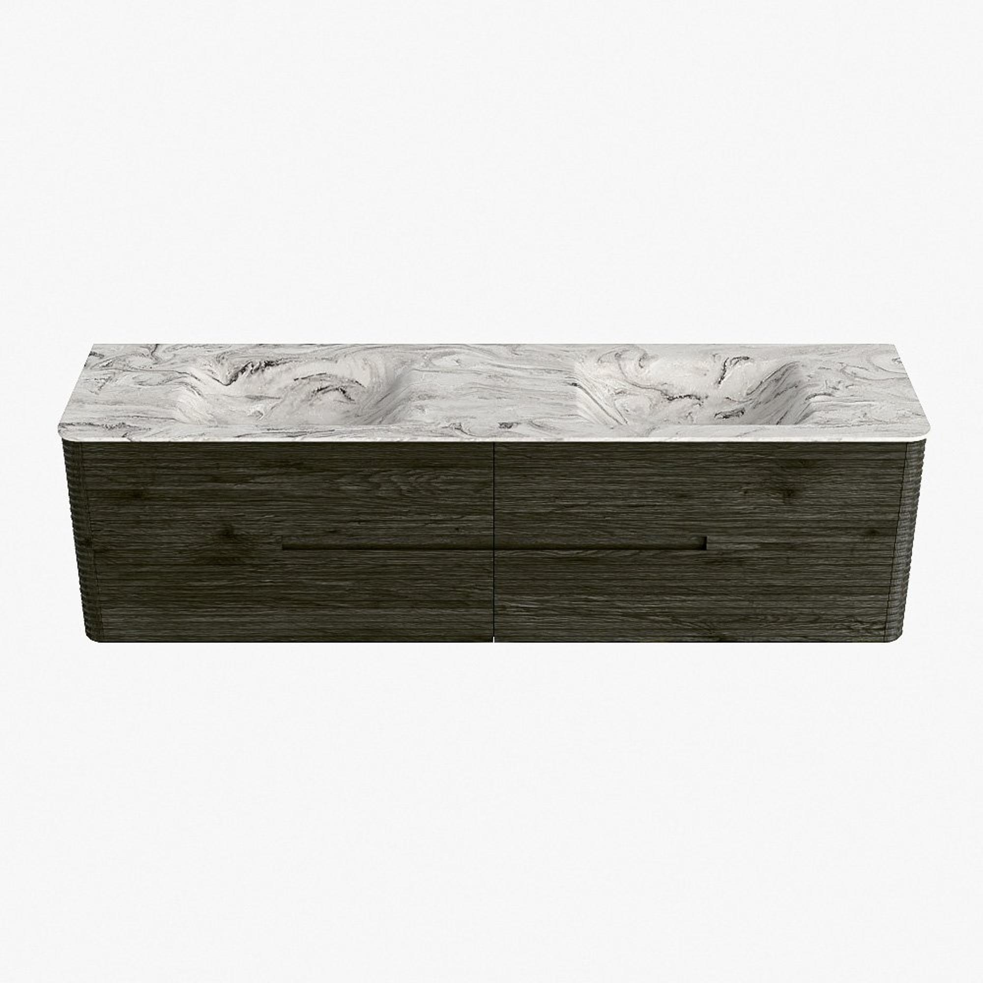 Mondiaz CIRO-DLUX Ensemble de meubles de salle de bains - 180x45x50cm - Plan vasque solid surface Glace - 2 lavabos double - 2 trous de robinetterie - 4 tiroirs - Shadow