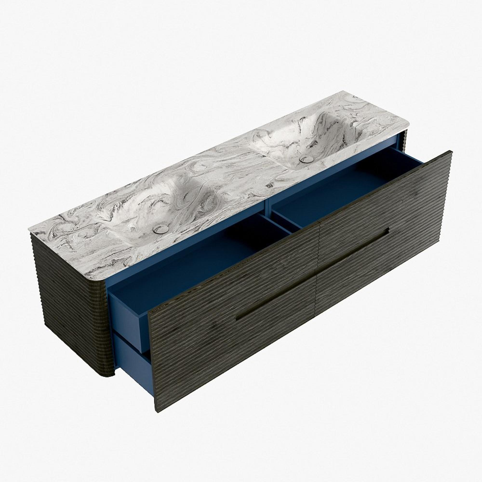 Mondiaz CIRO-DLUX Meuble de salle de bains - 180x45x50cm - Plan vasque Solid surface Glace - 2 vasques Double - sans trous de robinet - 4 tiroirs - Shadow
