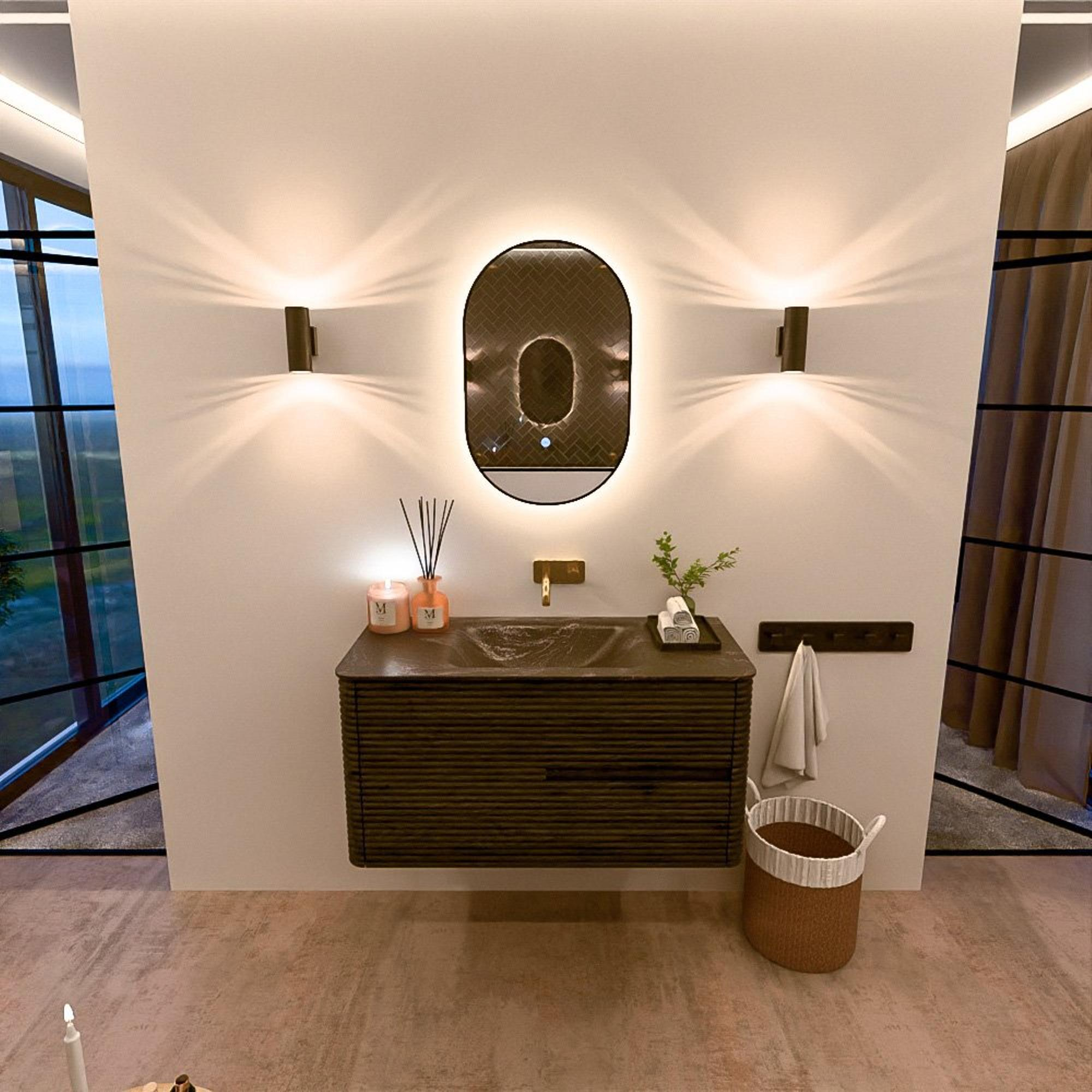 Mondiaz CIRO-DLUX Ensemble de meubles de salle de bains - 100x45x50cm - plan vasque Solid surface Lava - 1 vasque centrale - sans perçage pour robinet - 2 tiroirs - Shadow