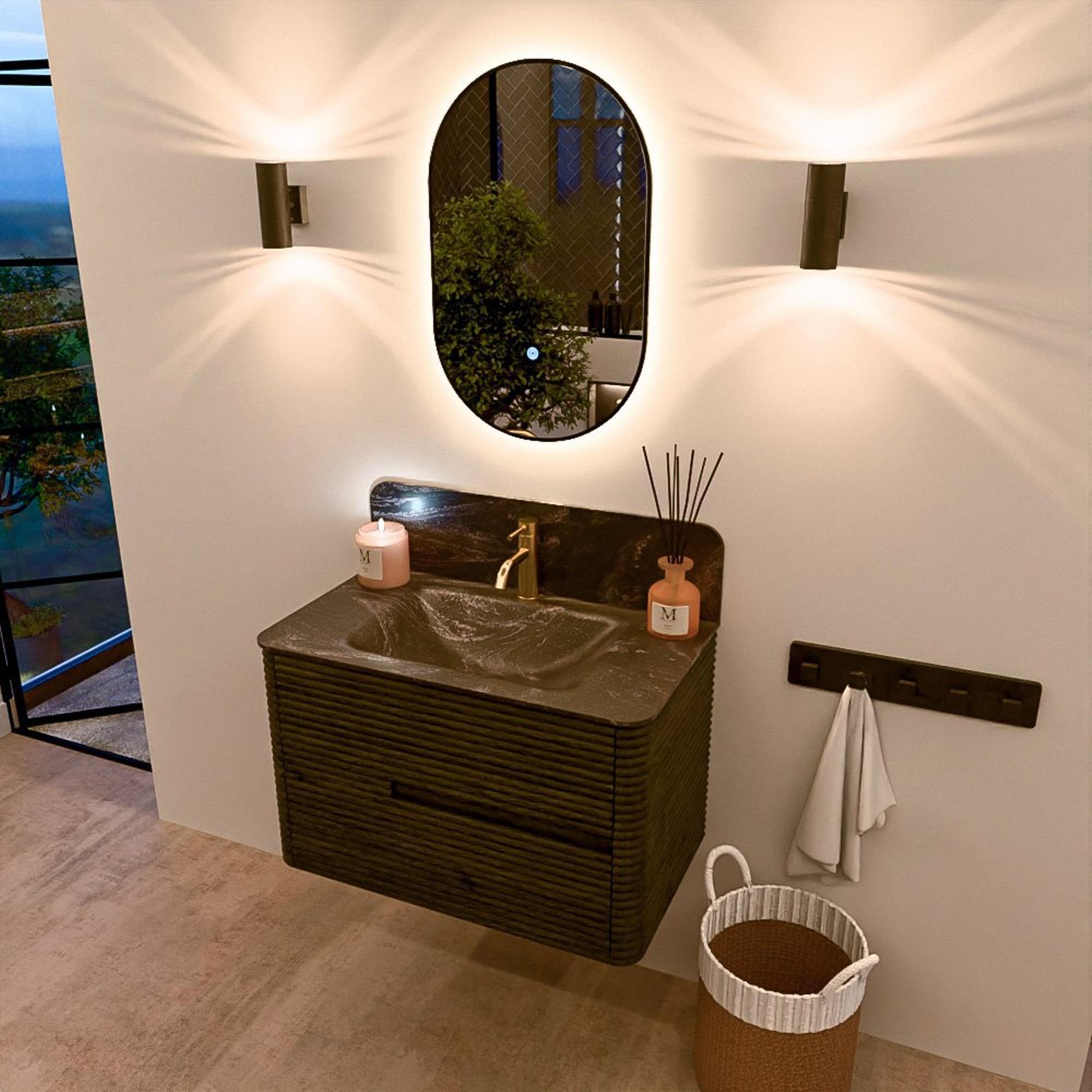 Mondiaz CIRO-DLUX Ensemble de meubles de salle de bains - 80x45x50cm - Lavabo en solid surface Lava - 1 vasque au milieu - 1 trou de robinet - 2 tiroirs - Shadow