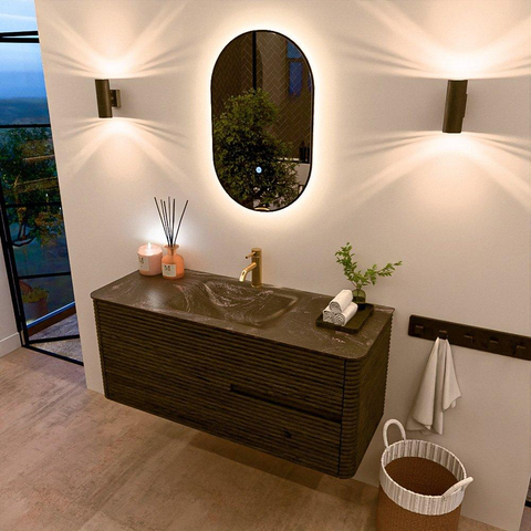 Mondiaz CIRO-DLUX Ensemble de meuble de salle de bains - 120x45x50cm - Lavabo solid surface Lava - 1 vasque au milieu - 1 trou de robinet - 2 tiroirs - Shadow