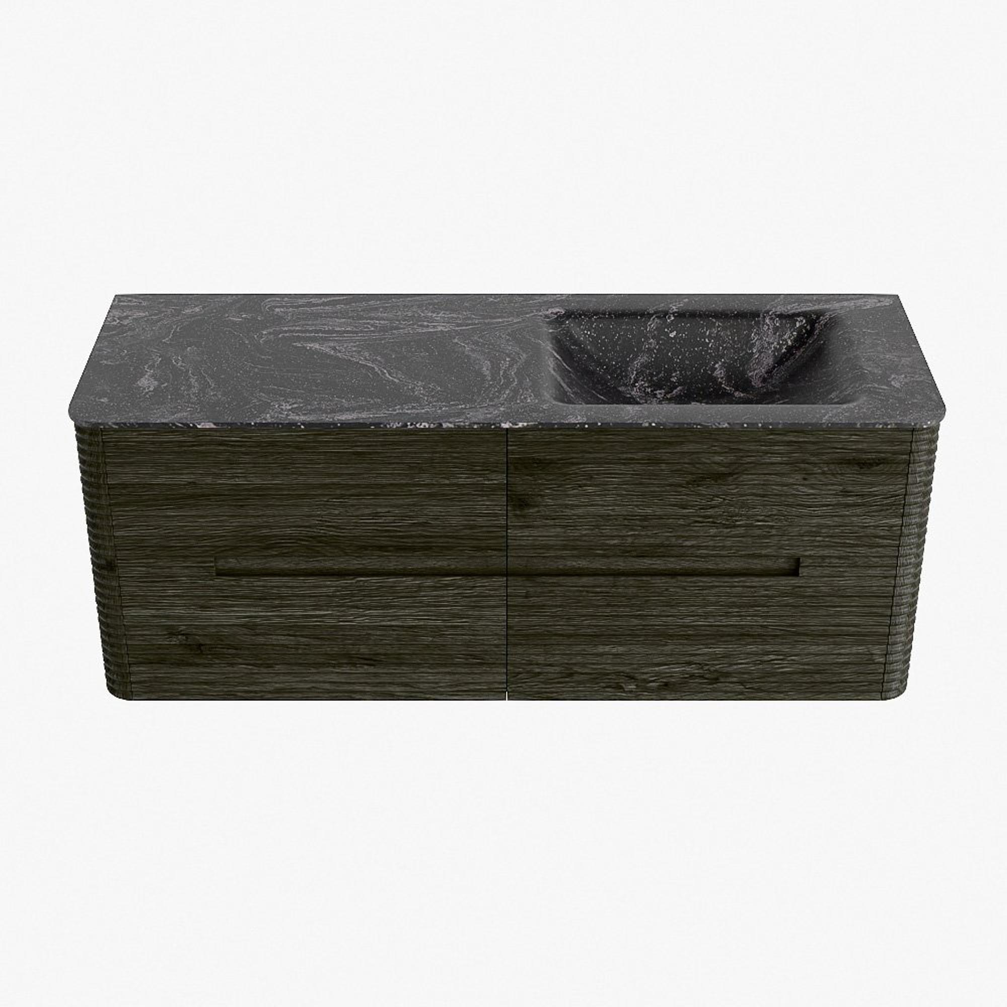 Mondiaz CIRO-DLUX Meuble de salle de bains set - 130x45x50cm - Lavabo solid surface Lava - 1 vasque droite - 1 trou de robinet - 4 tiroirs - Shadow