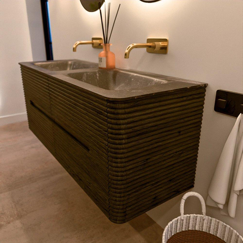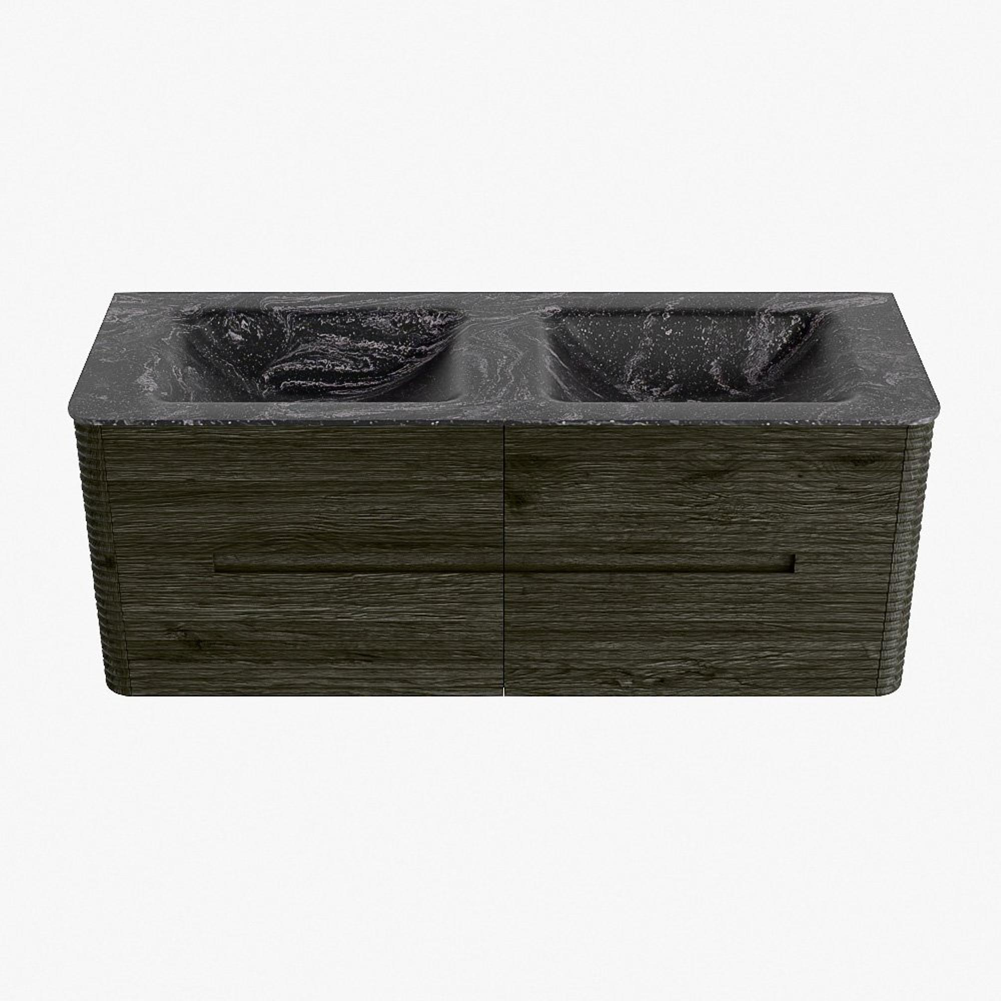 Mondiaz CIRO-DLUX Ensemble de meubles de salle de bains - 130x45x50cm - Lavabo solid surface Lava - 2 vasques double - sans trous de robinet - 4 tiroirs - Shadow