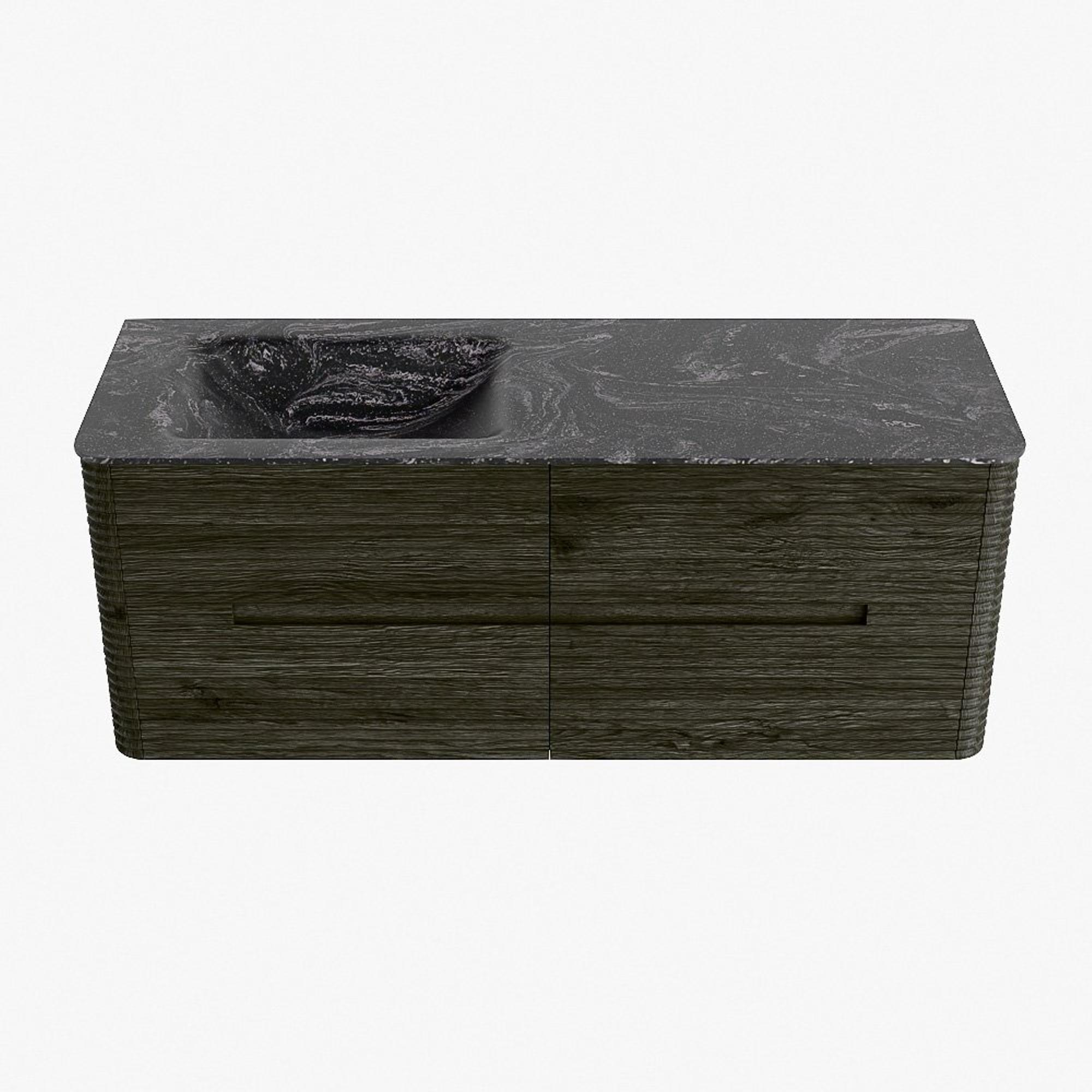 Mondiaz CIRO-DLUX Ensemble de meubles de salle de bains - 130x45x50cm - lavabo en solid surface Lava - 1 vasque à gauche - sans trous de robinet - 4 tiroirs - Shadow