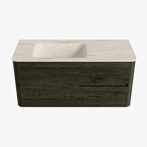 Mondiaz CIRO-DLUX Ensemble de meubles de salle de bains - 110x45x50cm - Plan-vasque Solid surface Meli - 1 lavabo à gauche - 1 trou de robinet - 2 tiroirs - Shadow