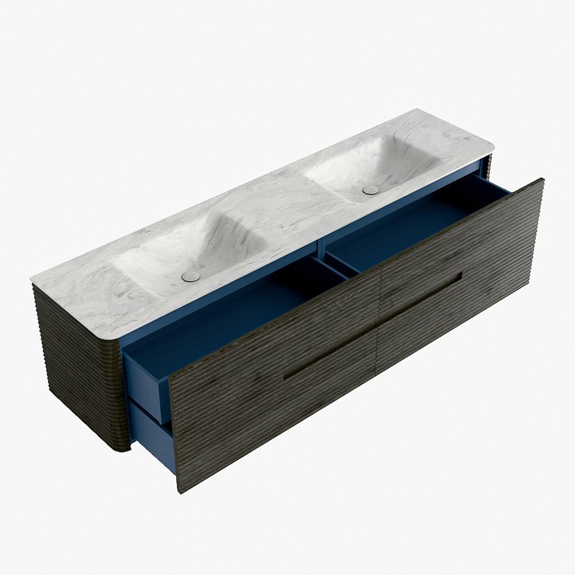 Mondiaz CIRO-DLUX Ensemble de meubles de salle de bains - 190x45x50cm - Plan vasque solid surface Opalo - 2 vasques double - sans trous de robinetterie - 4 tiroirs - Shadow