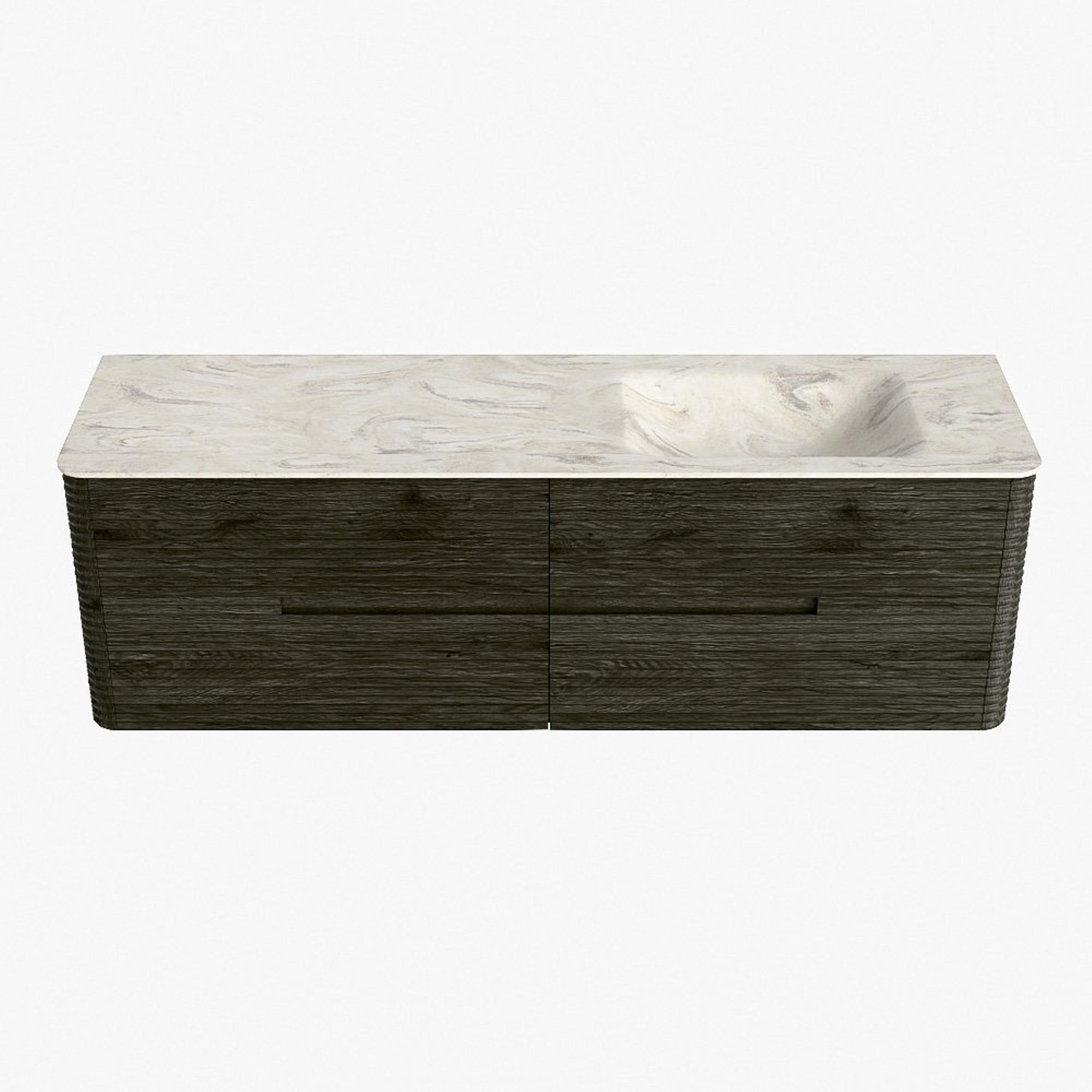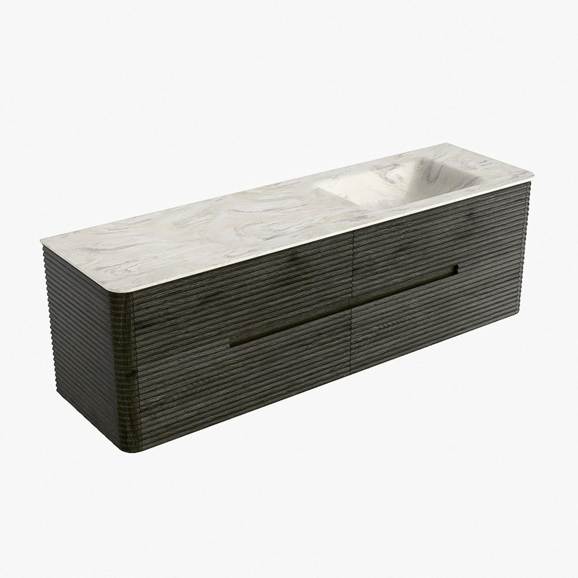 Mondiaz CIRO-DLUX Ensemble de meubles de salle de bains - 160x45x50cm - Plan-vasque solid surface Ostra - 1 vasque à droite - sans trous de robinetterie - 4 tiroirs - Shadow