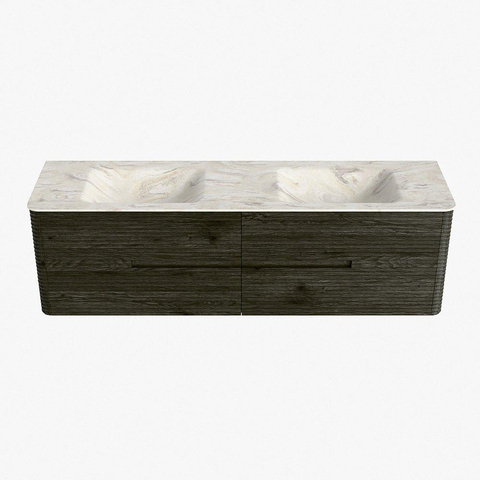 Mondiaz CIRO-DLUX Ensemble de meubles de salle de bains - 170x45x50cm - Plan-vasque en solid surface Ostra - 2 vasques Double - 2 trous de robinetterie - 4 tiroirs - Shadow