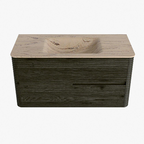 Mondiaz CIRO-DLUX Ensemble de meubles de salle de bains - 100x45x50cm - Plan vasque solid surface Arena - 1 vasque au centre - sans trous de robinetterie - 2 tiroirs - Shadow