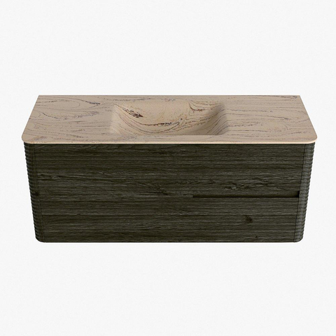 Mondiaz CIRO-DLUX Meuble de salle de bains - 120x45x50cm - Plan vasque solid surface Arena - 1 vasque centrale - sans trous de robinetterie - 2 tiroirs - Shadow