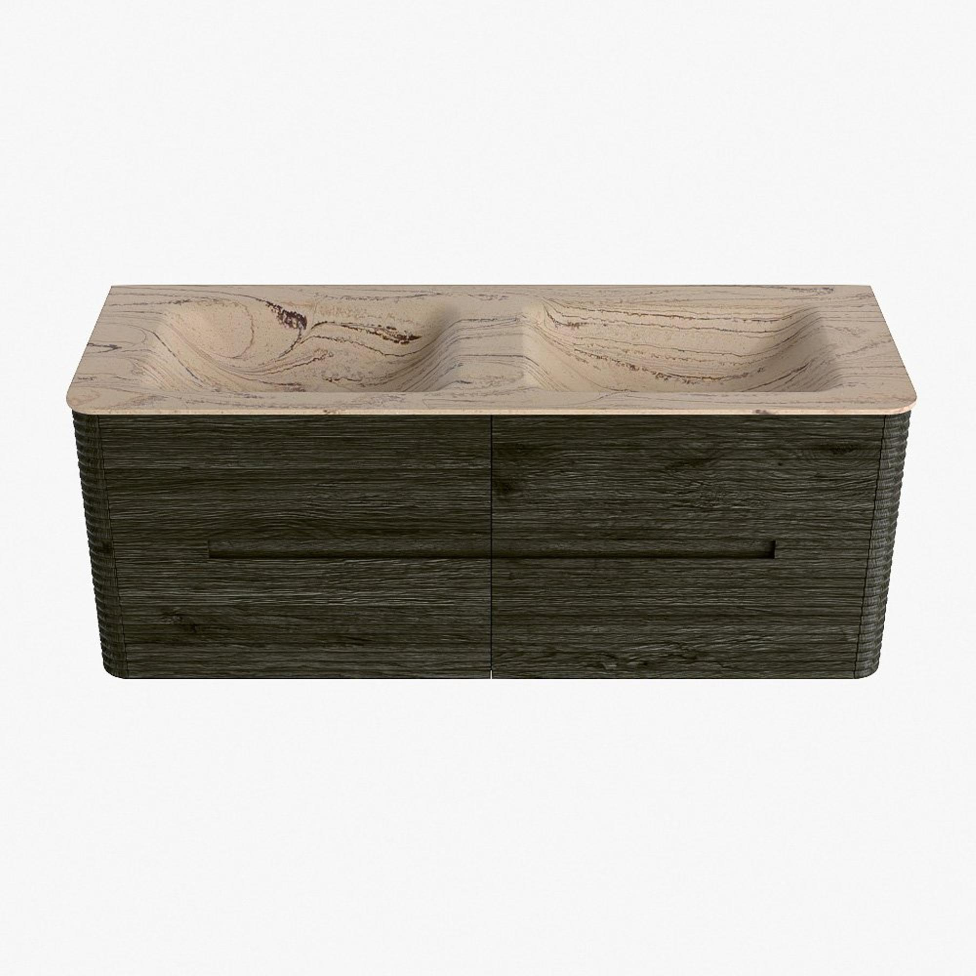 Mondiaz CIRO-DLUX Ensemble de meubles de salle de bains - 130x45x50cm - Plan de toilette en Solid surface Arena - 2 vasques double - sans trous de robinet - 4 tiroirs - Shadow
