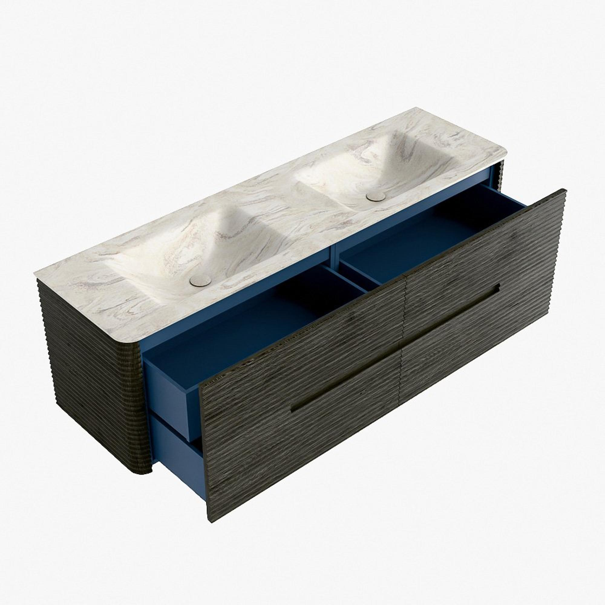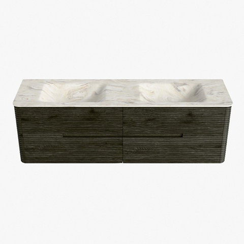 Mondiaz CIRO-DLUX Ensemble de meubles de salle de bains - 160x45x50cm - Plan vasque solid surface Ostra - 2 vasques double - 2 trous de robinet - 4 tiroirs - Shadow