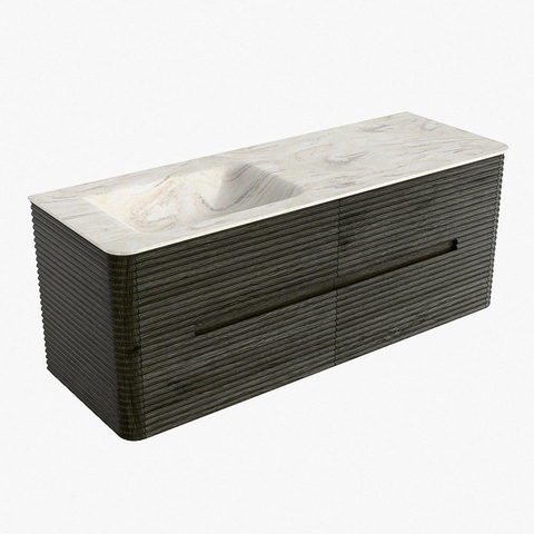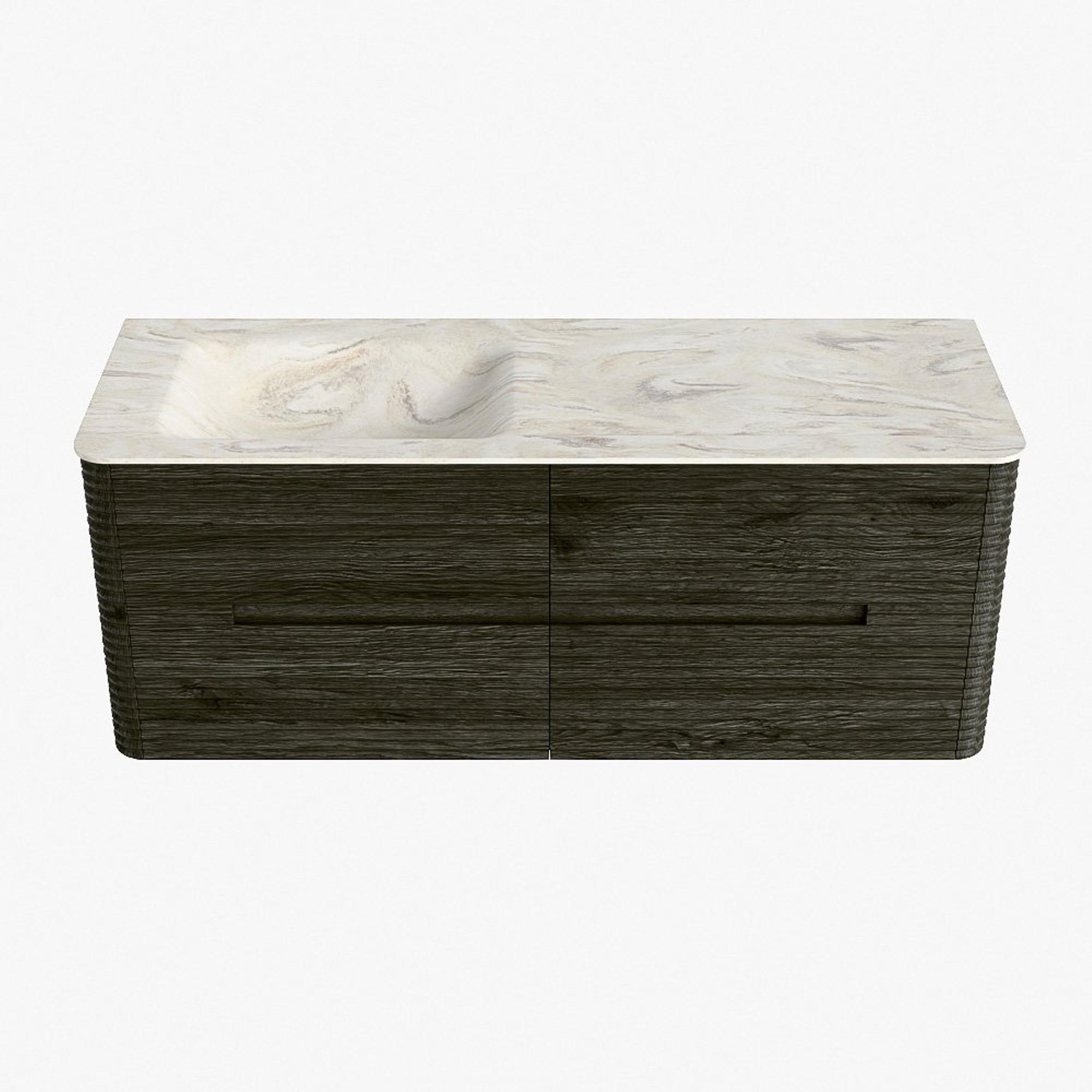 Mondiaz CIRO-DLUX Ensemble de meubles de salle de bains - 130x45x50cm - Plan-vasque Solid surface Ostra - 1 vasque à gauche - 1 trou de robinet - 4 tiroirs - Shadow