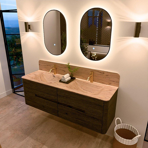 Mondiaz CIRO-DLUX Ensemble de meubles de salle de bains - 150x45x50cm - Plan de toilette solid surface Arena - 2 vasques Double - 2 trous de robinetterie - 4 tiroirs - Shadow