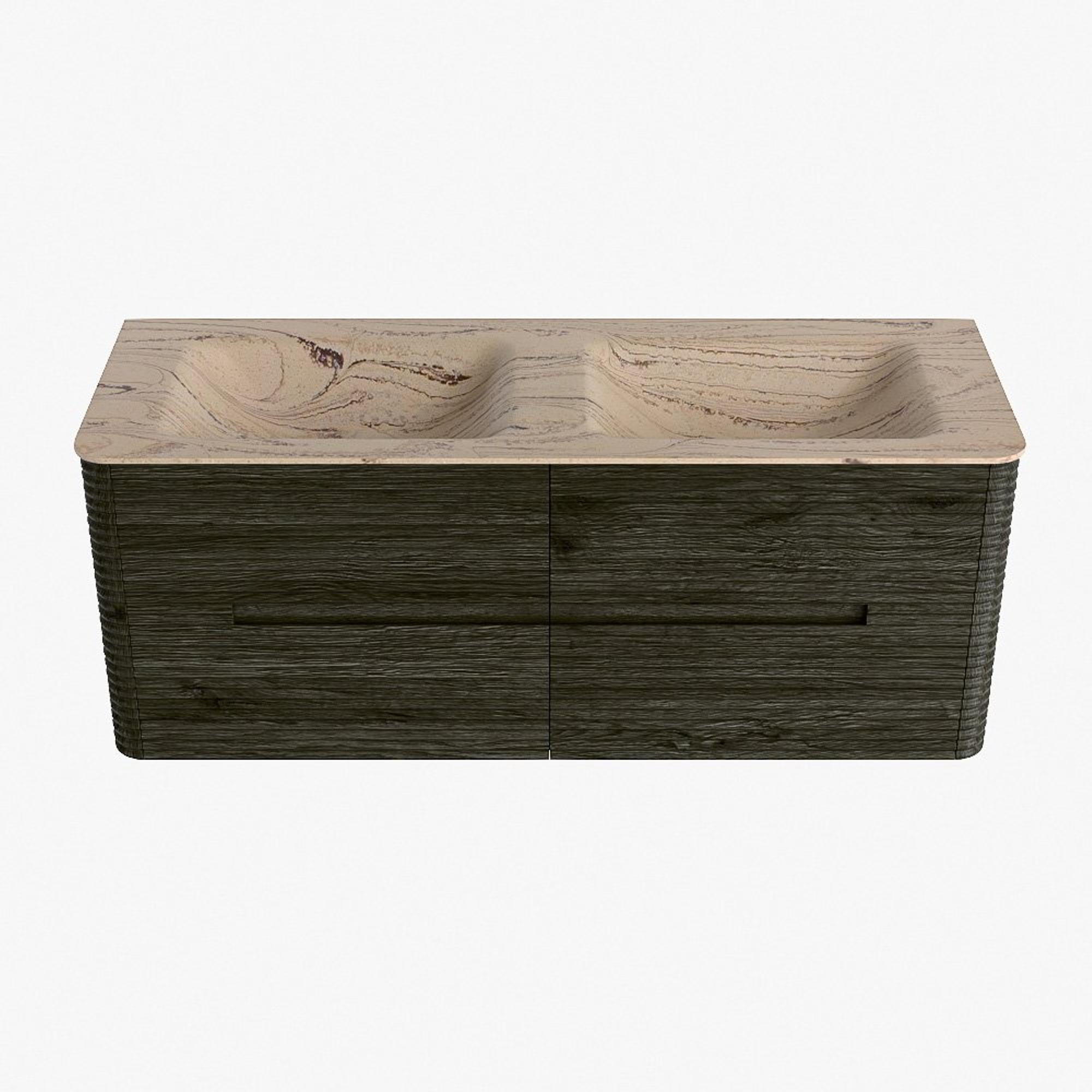 Mondiaz CIRO-DLUX Meuble de salle de bains - 130x45x50cm - Plan vasque solid surface Arena - 2 vasques double - 2 trous de robinetterie - 4 tiroirs - Shadow