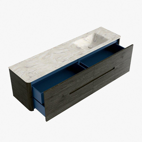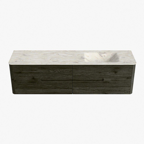 Mondiaz CIRO-DLUX Meuble de salle de bains - 180x45x50cm - Plan-vasque solid surface Ostra - 1 lavabo à droite - sans trous de robinetterie - 4 tiroirs - Shadow