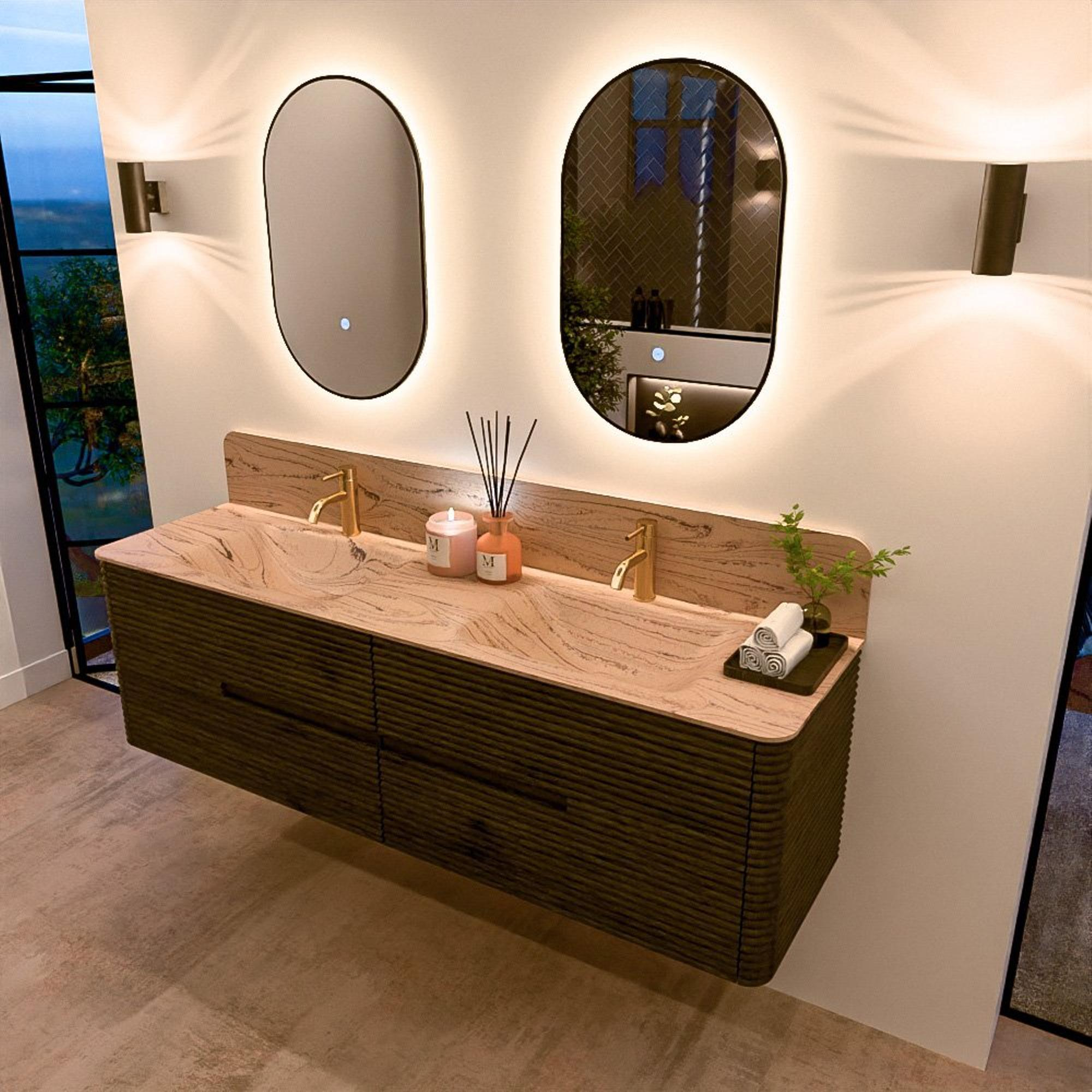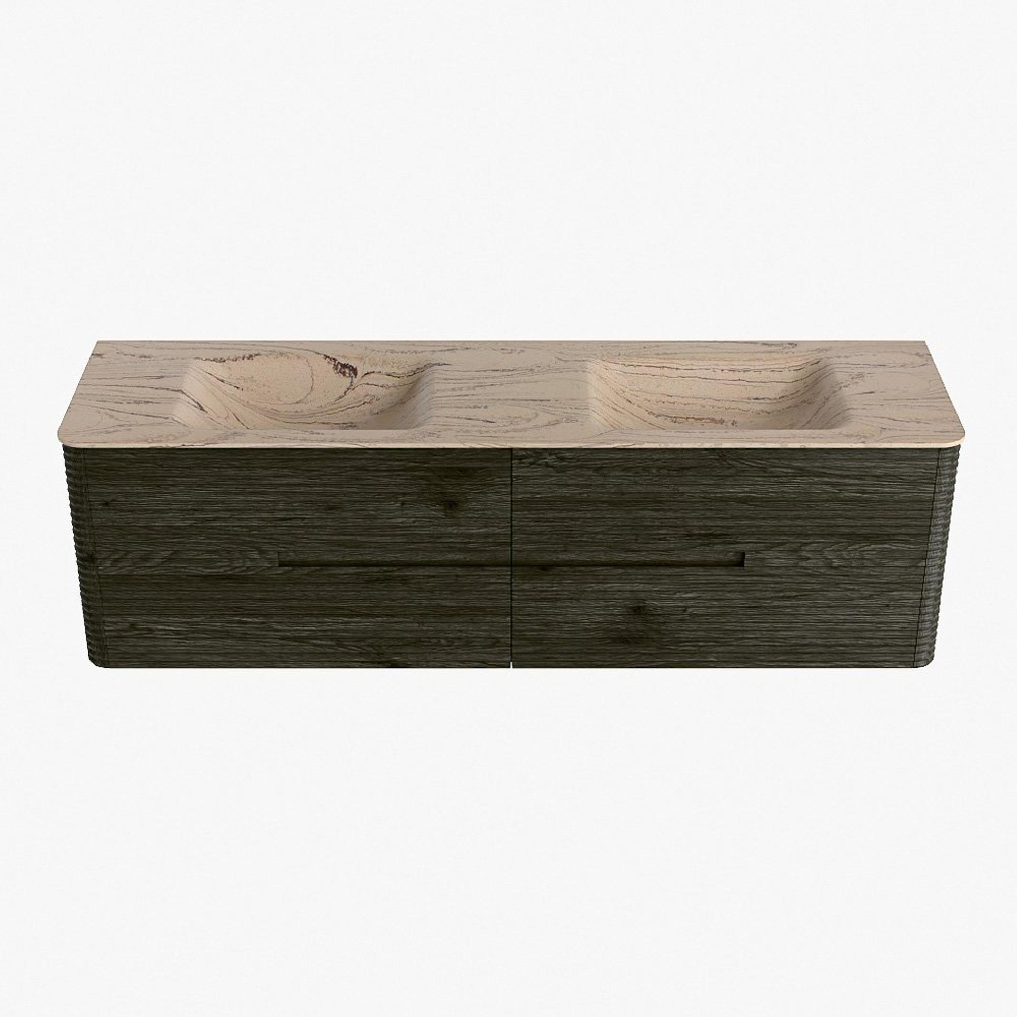 Mondiaz CIRO-DLUX Meuble de salle de bains - 170x45x50cm - Plan vasque solid surface Arena - 2 vasques double - 2 trous de robinetterie - 4 tiroirs - Shadow