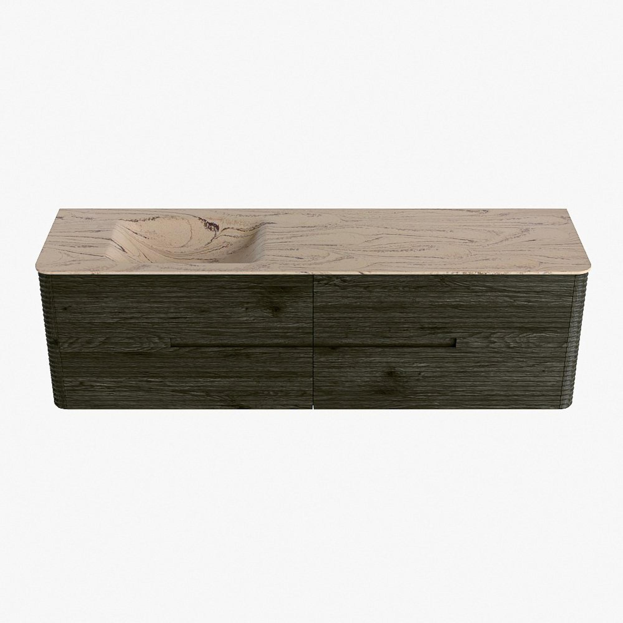 Mondiaz CIRO-DLUX Ensemble meuble de salle de bains - 170x45x50cm - Plan vasque solid surface Arena - 1 lavabo à gauche - sans trous de robinet - 4 tiroirs - Shadow