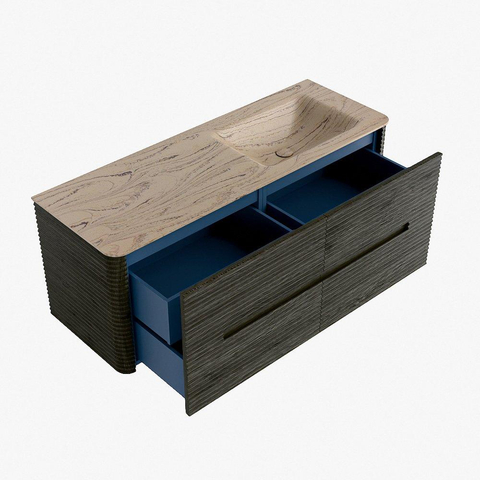 Mondiaz CIRO-DLUX Ensemble de meubles de salle de bains - 130x45x50cm - Vasque solid surface Arena - 1 lavabo à droite - sans trous de robinet - 4 tiroirs - Shadow