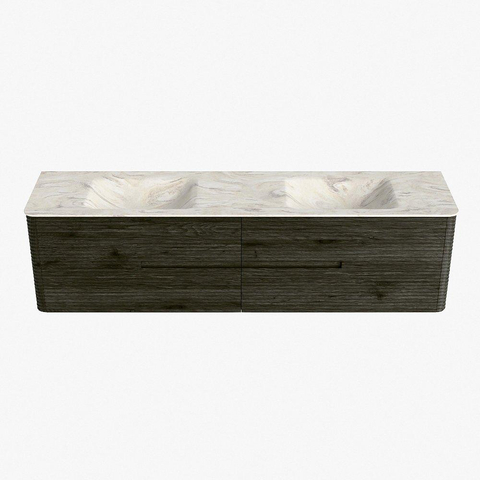 Mondiaz CIRO-DLUX Meuble de salle de bains - 190x45x50cm - Plan-vasque Solid surface Ostra - 2 vasques Double - 2 trous de robinetterie - 4 tiroirs - Shadow