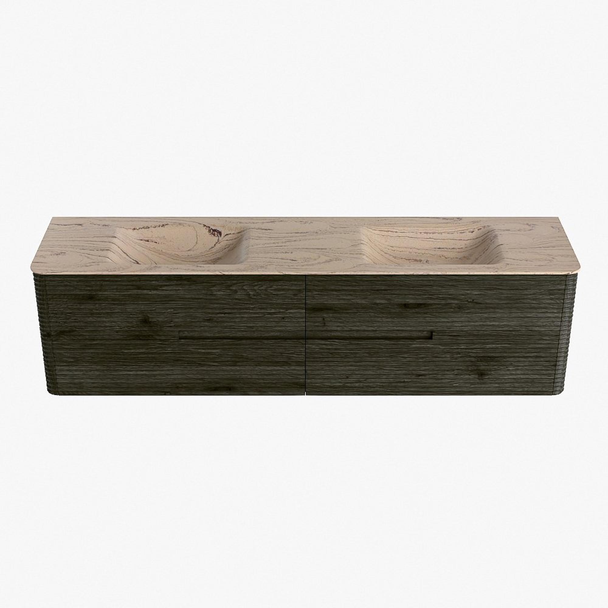 Mondiaz CIRO-DLUX Meuble de salle de bains - 190x45x50cm - Plan vasque solid surface Arena - 2 vasques Double - 2 trous de robinetterie - 4 tiroirs - Shadow