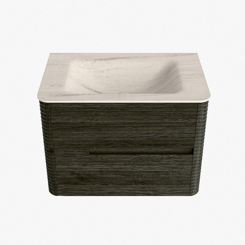 Mondiaz CIRO-DLUX Meuble de salle de bains - 70x45x50cm - Plan vasque solid surface Meli - 1 vasque au milieu - sans trous de robinet - 2 tiroirs - Shadow