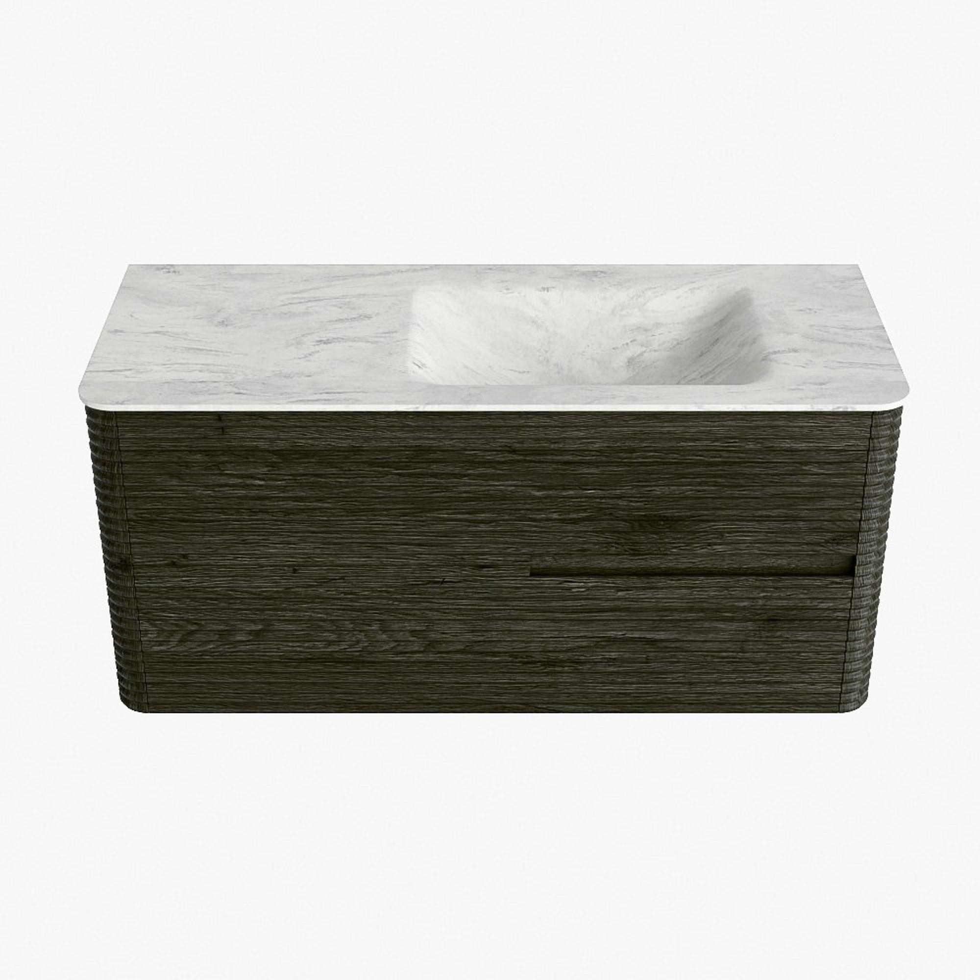 Mondiaz CIRO-DLUX Ensemble de meubles de salle de bains - 110x45x50cm - vasque en solid surface Opalo - 1 bassin à droite - sans trous de robinet - 2 tiroirs - Shadow