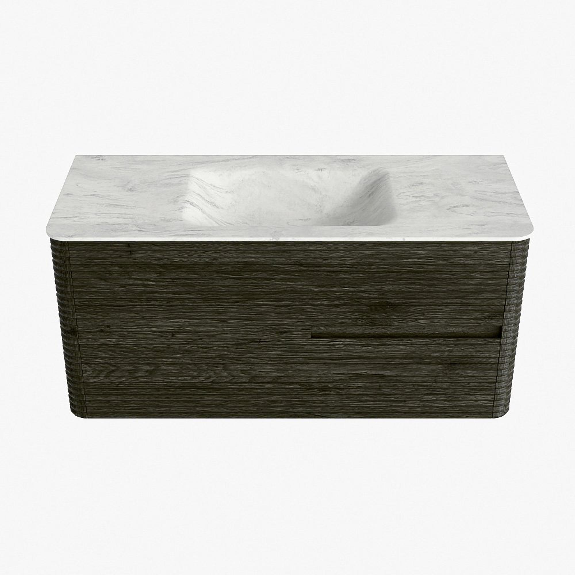 Mondiaz CIRO-DLUX Meuble de salle de bains - 110x45x50cm - Plan vasque solid surface Opalo - 1 lavabo central - sans trous de robinetterie - 2 tiroirs - Shadow